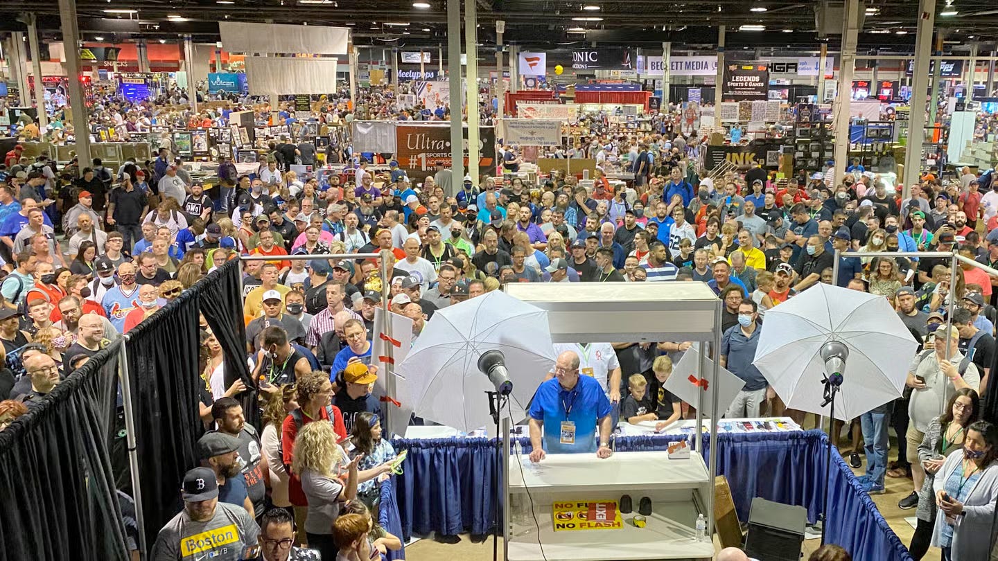 Second is card shows. Over 100,000 collectors swarmed Rosemont, IL for last year’s NSCC convention. Trading, comparing, buying, selling, and otherwise talking shop.