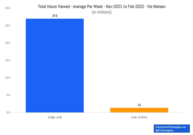 It’s safe to say that CBS is probably pretty happy with its move. They haven’t seen much deteriation in viewership. Amazon, on the other hand, doesn’t appear to have a blockbuster on its hands. However, Amazon did renew Judy Justice for a new season. Plus, it’s hard to know how Amazon measures success - if Judy Justice attracts Prime subscribers who spend on the Amazon platform, that might be enough for Amazon. We’ll check back in on progress after season 2!